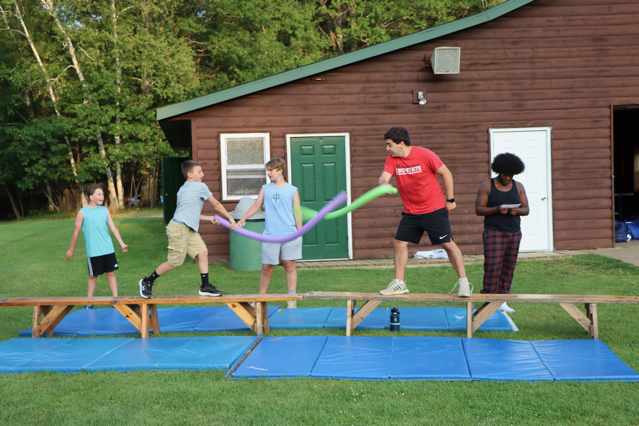 The evening program was called “Storming the Manor” referring to our office building, “The Manor.” Some years we have stormed Hogwarts, the Batcave, and other places that we can use for theming the stations for the evening. The gist of the program is the campers have to work as a team, traveling to a dozen different stations and completing some task to earn a clue or piece of a puzzle that will allow them to get the final event: canteen for the evening, which our canteen staff had left locked up and left for a night off. It’s like a more physical escape room, in a way. They gotta work to earn it, and with all the running around they have to do, they will definitely have earned a snack. Some of the stations involved a pool noodle duel with one of the staff, serenading our Chalet members, basketball hoop shoots, and many others. When you check out the photos from the program, hopefully that gives a little context for what you’re looking at.