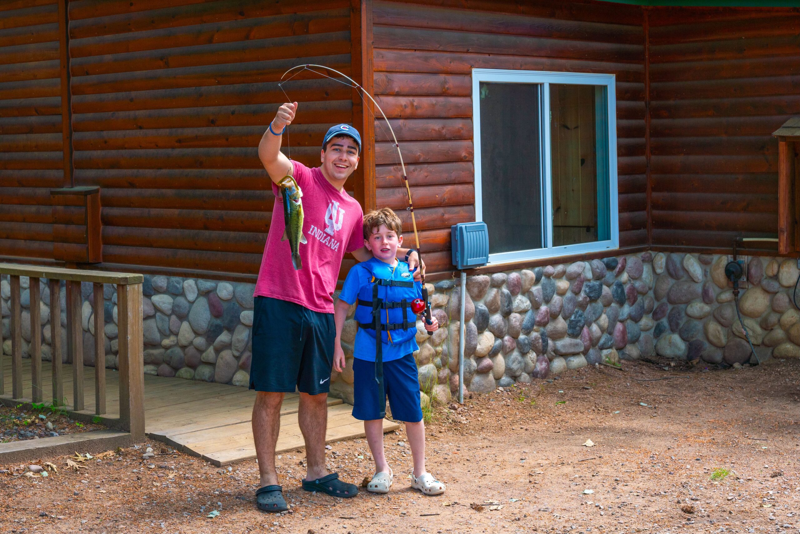 By 10:45, we jumped into first and second period. Kids skied, scaled the wall, and played lots of different games around camp. The biggest achievement today took place at fishing. Right off the coast of camp, a 15-inch bass was caught!!! First period got to watch as our Head Cook B-Strain cut and fileted the fish. Since we slept in half an hour later, we didn’t have a morning free period. Instead, we jumped right into a lettuce chicken wrap lunch. That wasn’t it for the first-period fishing class, though. They all got to have a piece of the fresh catch. After getting our necessary protein, we feasted on Italian ice.