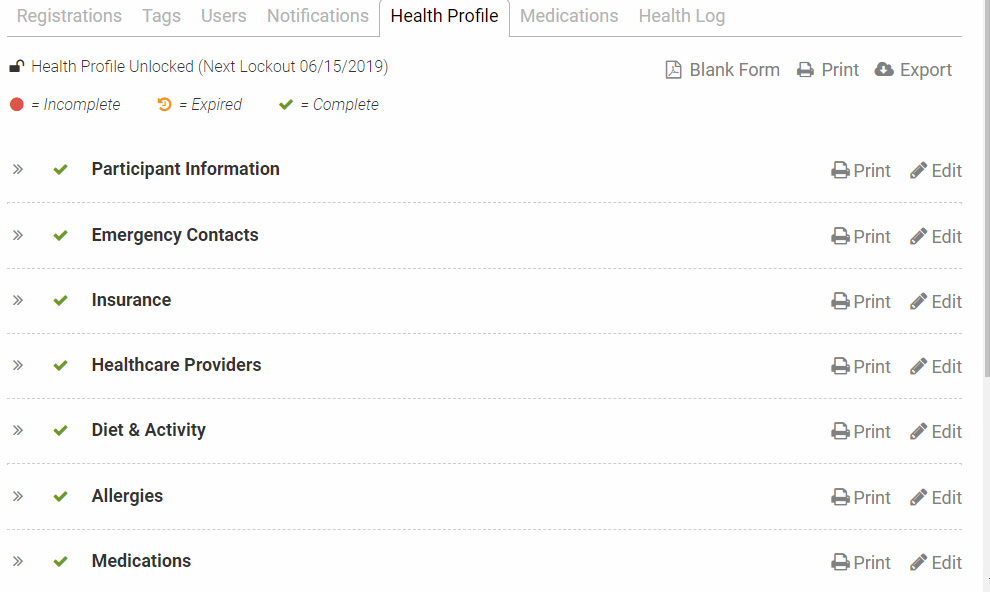 for a section of the Health Profile, this means you need to confirm the info is still accurate (if your son was a camper last summer).